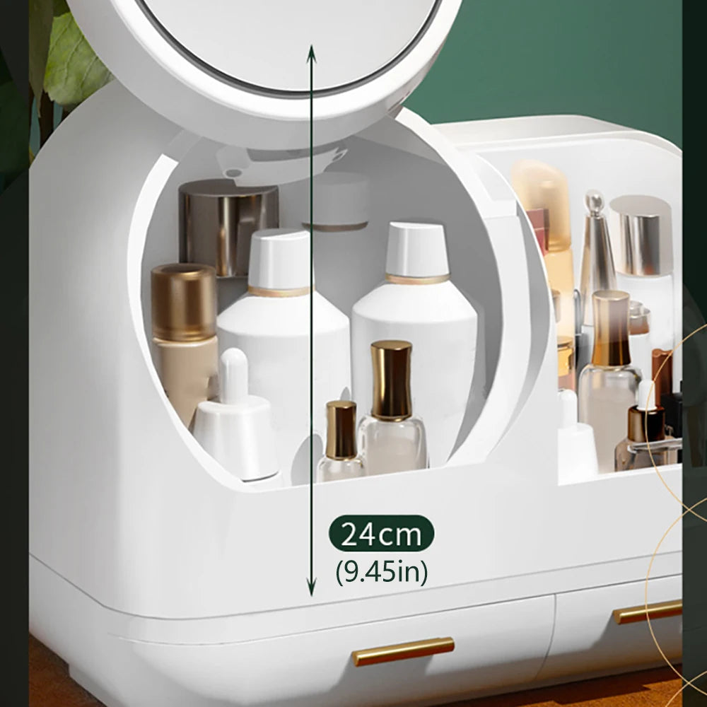 - Type: Cosmetic storage box with LED mirror
